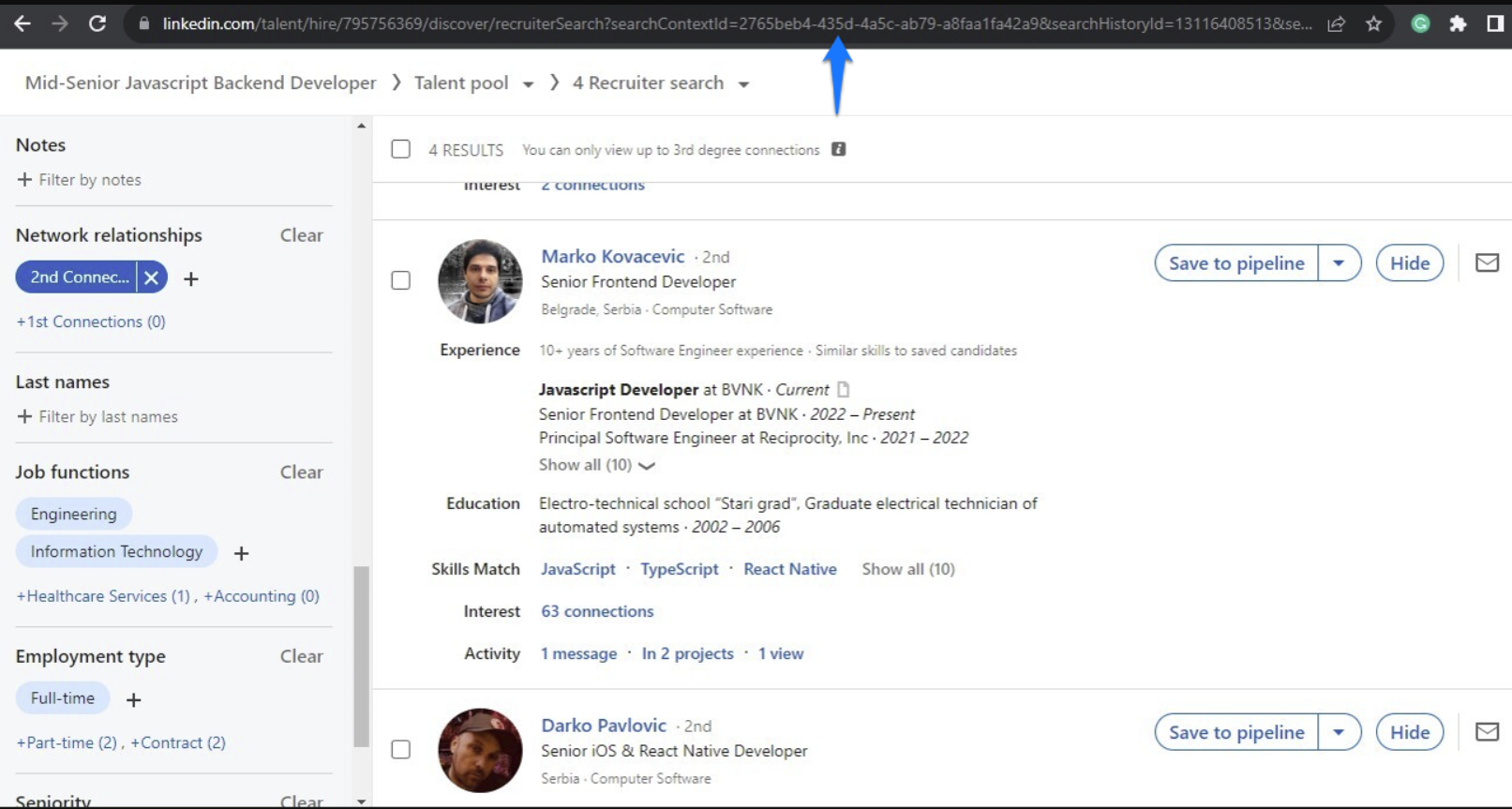 - First things first—head over to LinkedIn! Perform a search in LinkedIn Recruiter or Recruiter Lite. Once you’ve got your search results, copy that URL link. This will be the foundation of your LeadYoda.co campaign. 🌐