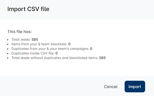 - Duplicates: Check for duplicates across your team’s campaigns and within the CSV file itself.