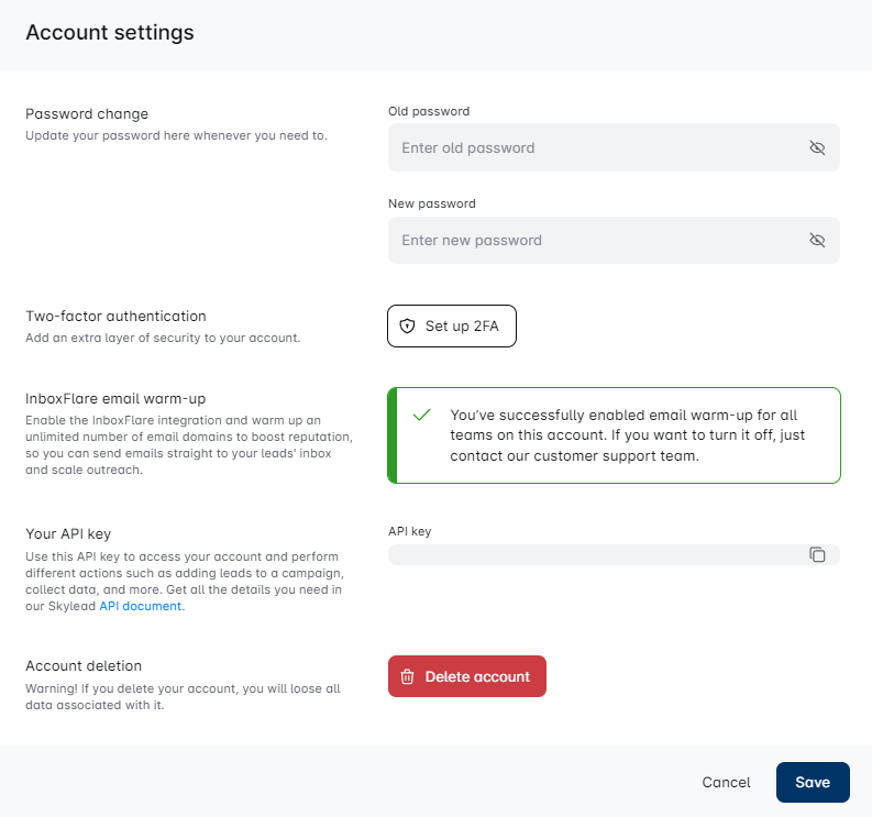 Exciting news! You can now warm up emails directly through LeadYoda.co, thanks to our partnership with InboxFlare. π With 100 free warm-up slots. Here is our brief overview of the new feature and how to actiate it for your account!